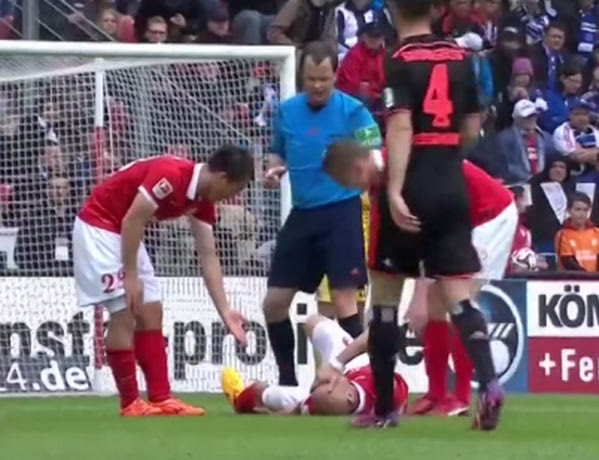 Στο 30ο λεπτό της αναμέτρησης Μάινς - Αμβούργο, ο Σότο φαίνεται να σπάει το πόδι του μετά από μία κόντρα με τον Φαν Ντερ Φάαρτ (VIDEO).