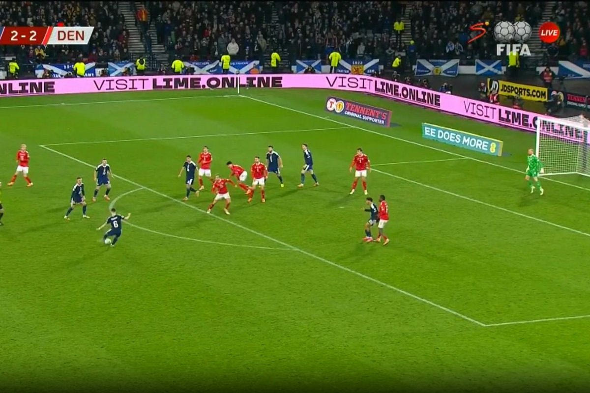 Ο Τίρνεϊ με σουτάρα εκτός περιοχής έγραψε το 3-2 για την Σκωτία στο 90+3′ της αναμέτρησης απέναντι στη Δανία.