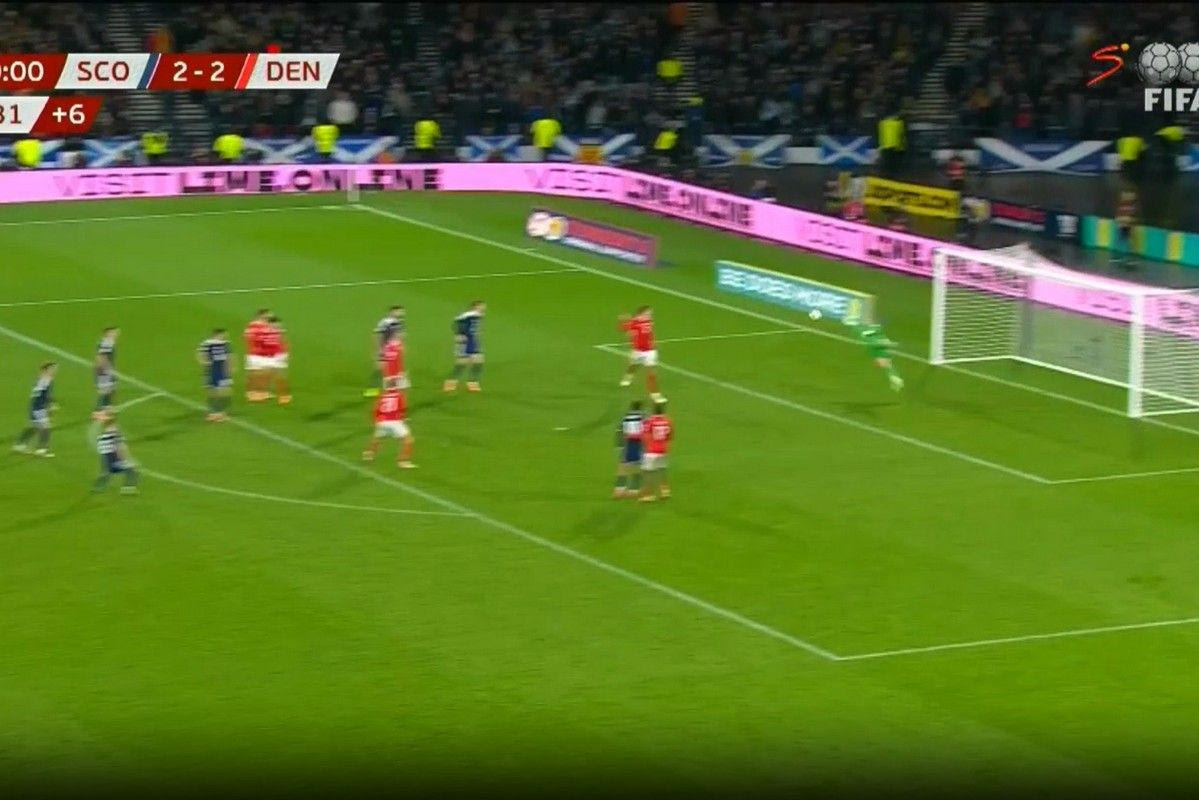 Ο Τίρνεϊ με σουτάρα εκτός περιοχής έγραψε το 3-2 για την Σκωτία στο 90+3′ της αναμέτρησης απέναντι στη Δανία.