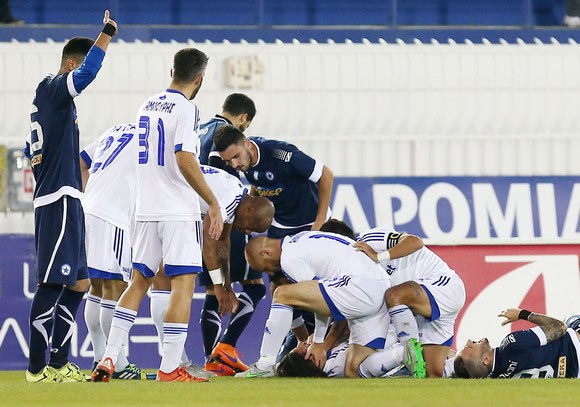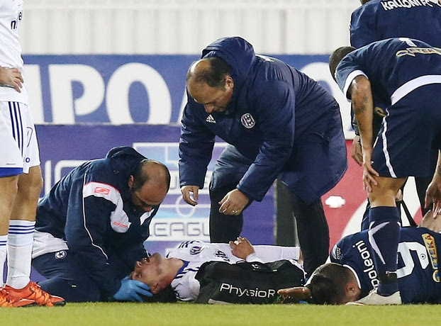 "Πάγωσαν" στο Περιστέρι με τον σοκαριστικό τραυματισμό του Ραούλ Γιορέντε. Άθελά του ο Στέφανο Ναπολεόνι τον χτύπησε στο κεφάλι, με αποτέλεσμα να γυρίσει η γλώσσα του Ισπανού αριστερού μπακ της Καλλονής. (PHOTOS)