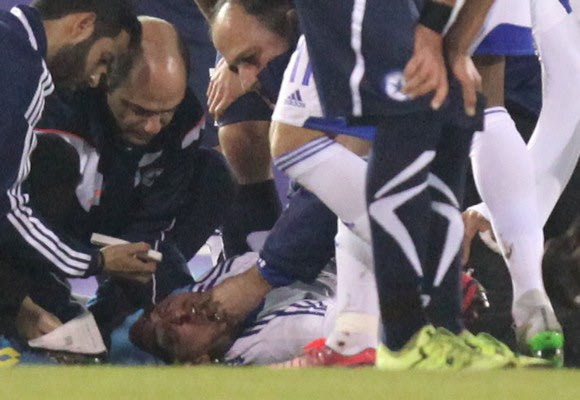 Τού γύρισε η γλώσσα, προκαλώντας πανικό στους ποδοσφαιριστές των δύο ομάδων. Έπειτα από μερικά λεπτά, αφού του παρασχέθηκαν οι πρώτες βοήθειες, ανέκτησε τις αισθήσεις του και συνοδεία φορεία πέρασε εκτός αγωνιστικού χώρου. Φυσικά ήταν αδύνατο να συνεχίσει στο ματς και έγινε αλλαγή με τον Κρολ.