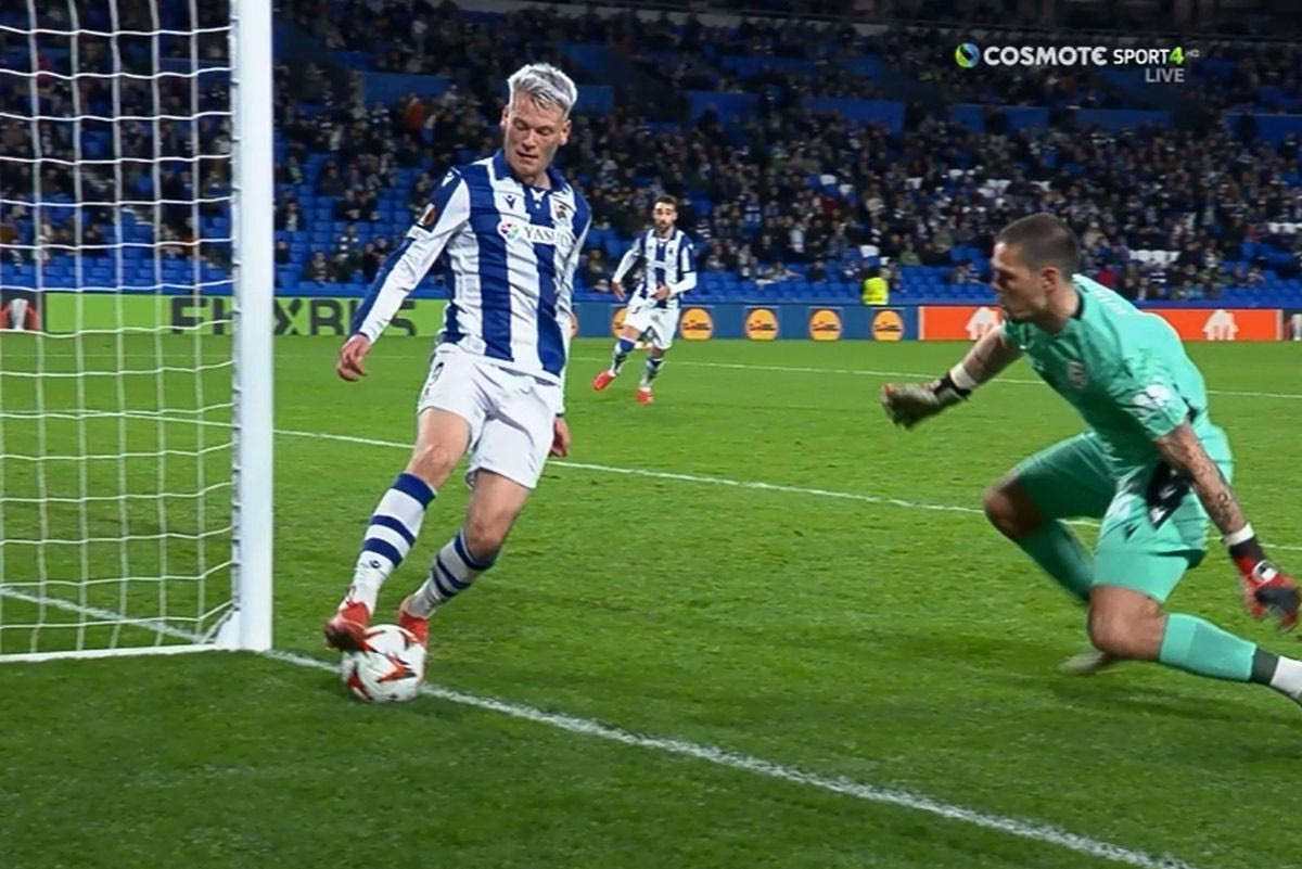 Σοσιεδάδ – ΠΑΟΚ: Οι Βάσκοι βρήκαν σε τέσσερα λεπτά δύο φορές δίχτυα, αλλά το δεύτερο γκολ ακυρώθηκε γιατί η μπάλα είχε βγει άουτ