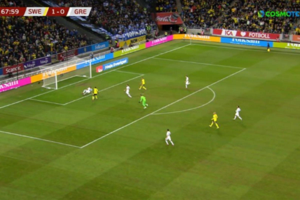 Η Σουηδία βρήκε και δεύτερο γκολ στην αναμέτρηση με την Ελλάδα μετά από ασυνεννοησία στην άμυνα και εύκολο πλασέ του Ίσακ στο 68' της αναμέτρησης.