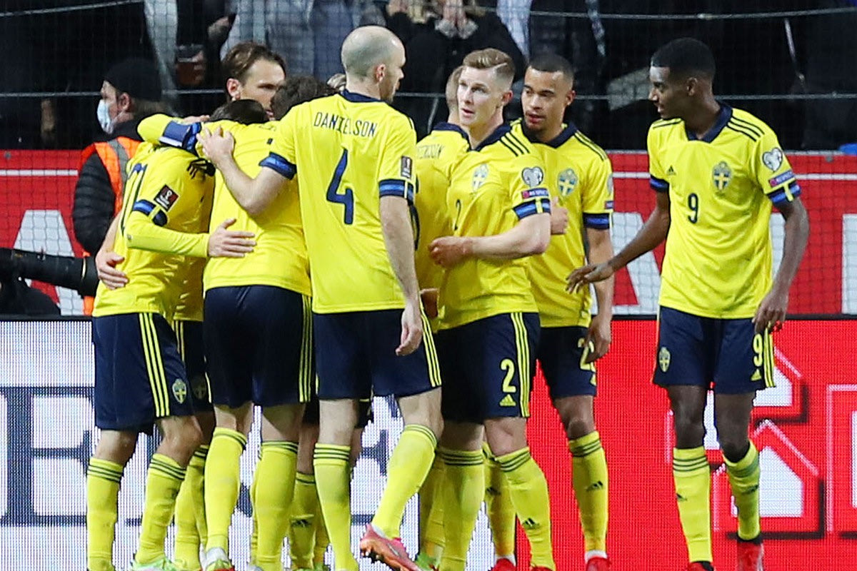 Οι παίκτες της Σουηδίας πανηγυρίζουν το 1-0 επί της Ελλάδας | 12 Οκτωβρίου 2021 IN TIME SPORTS
