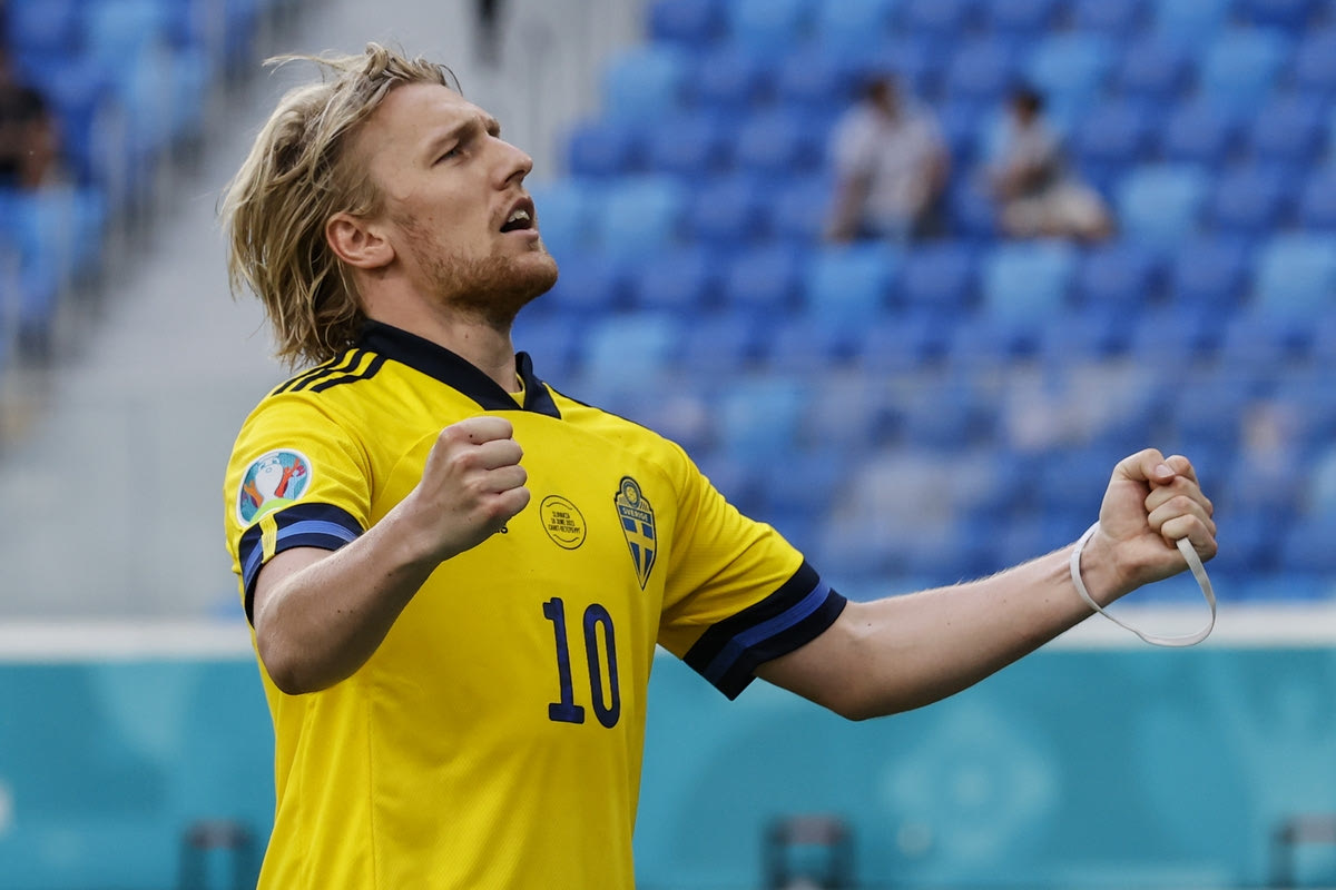 Ο Φόρσμπεγκ πανηγυρίζει γκολ στην αναμέτρηση ανάμεσα στη Σουηδία και τη Σλοβακία © 2021 Anatoly Maltsev, POOL/AP IMAGES