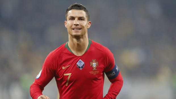 Portugal's Cristiano Ronaldo during the Euro 2020 group B qualifying soccer match between Ukraine and Portugal at the Olympiyskiy stadium in Kyiv, Ukraine, Monday, Oct. 14, 2019. (AP Photo/Efrem Lukatsky)