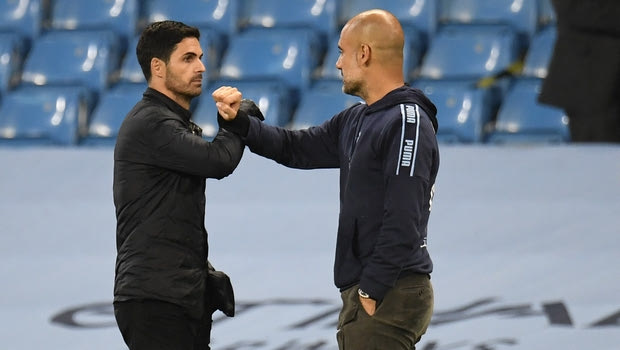 Πεπ Γκουαρδιόλα και Μίκελ Αρτέτα από ματς της Μάντσεστερ Σίτι με την Άρσεναλ