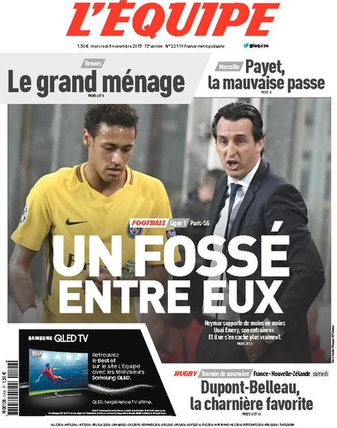 Το ρεπορτάζ της γαλλικής εφημερίδας υποστηρίζει πως τους δύο άνδρες χωρίζει μία… άβυσσος, με αποτέλεσμα να προκύπτουν ζητήματα τόσο στις προπονήσεις όσο και κατά τη διάρκεια των αγώνων. Ο Νεϊμάρ παρουσιάζεται πολλές φορές ανυπάκουος, δεν ακολουθεί τις οδηγίες, με συνέπεια ο Έμερι να βρίσκεται σε δύσκολη θέση όσον αφορά στη διαχείρισή του. Αξίζει να σημειωθεί πως ο έμπειρος τεχνικός προπονεί για πρώτη φορά τόσα πολλά αστέρια του παγκοσμίου ποδοσφαίρου, κάτι που σημαίνει πως δυσκολεύεται να κρατήσει, μέχρι στιγμής, τις ισορροπίες.