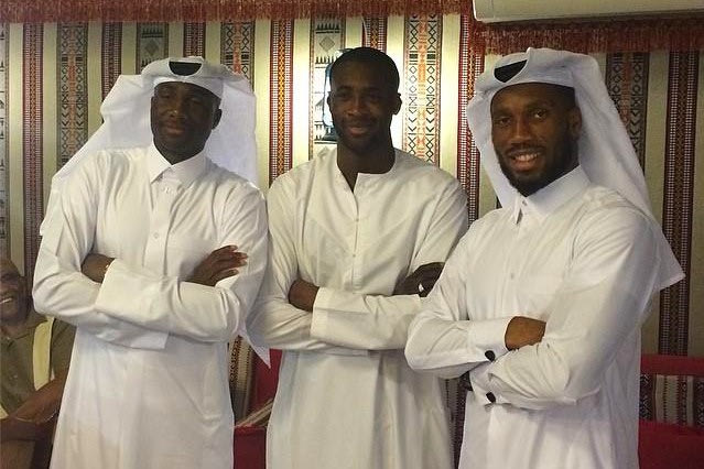Με την παραδοσιακή ενδυμασία του Κατάρ φωτογραφήθηκε ο Ντιντιέ Ντρογκμπα έχοντας στο πλευρό του, τους Γιάγια Τουρέ και Σολ Μπαμπά.