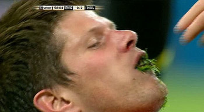 Είναι χαρακτηριστικό πως ο Ολλανδός συνελήφθη από τον τηλεοπτικό φακό με το στόμα του να έχει καλυφθεί με γρασίδι!