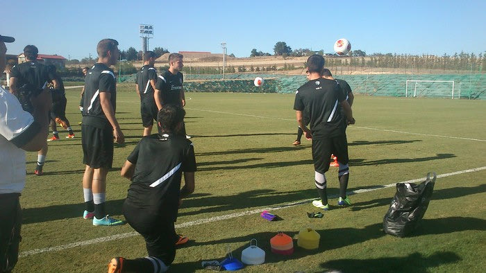 Οι τερματοφύλακες υπό την επίβλεψη του Δημήτρη Μούσιαρη αρχικά προπονήθηκαν ξεχωριστά και έπειτα ενσωματώθηκαν μαζί με τους συμπαίκτες τους. Το δεύτερο κομμάτι αναλώθηκε σε παιχνίδι 5 εναντίον 2.