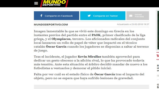 MUNDO DEPORTIVO – “Ο ΟΣΚΑΡ ΓΚΑΡΘΙΑ ΔΕΧΘΗΚΕ ΑΝΤΙΚΕΙΜΕΝΟ ΚΑΙ ΜΑΤΑΙΩΘΗΚΕ Η ΕΝΑΡΞΗ ΤΟΥ ΜΑΤΣ”