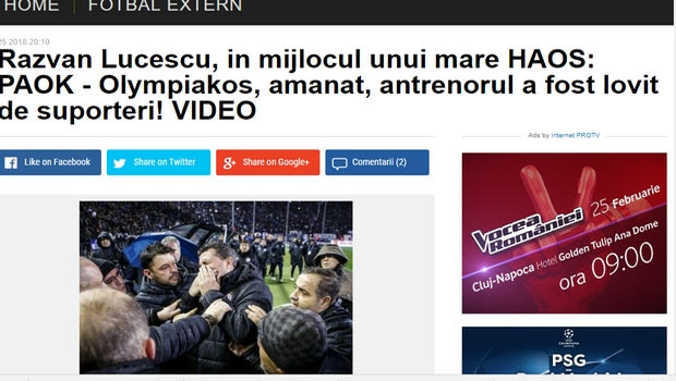 SPORT.RO – “ΣΤΟ ΧΑΟΣ ΤΟ ΠΑΟΚ – ΟΛΥΜΠΙΑΚΟΣ: Ο ΠΡΟΠΟΝΗΤΗΣ ΧΤΥΠΗΘΗΚΕ ΑΠΟ ΟΠΑΔΟΥΣ”