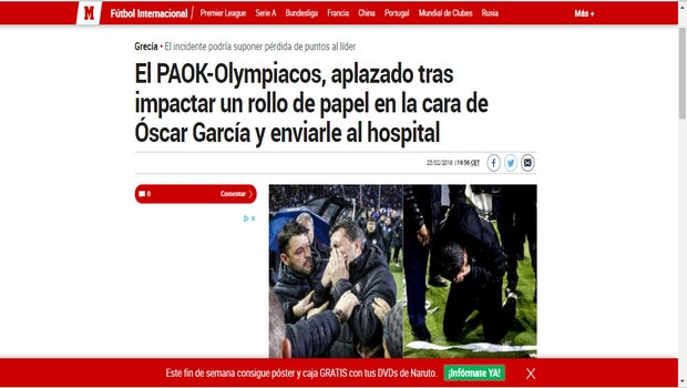 Από τις πατρίδες των προπονητών Ολυμπιακού και ΠΑΟΚ, Ισπανία και Ρουμανία, μέχρι το Ισραήλ περιγράφονται με μελανά χρώματα όσα συνέβησαν στην Τούμπα με τον τραυματισμό του Όσκαρ Γκαρθία. (photos)