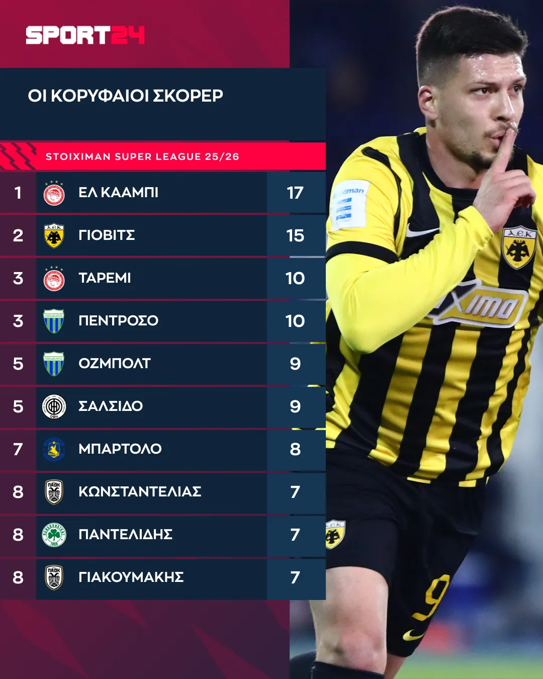 Stoiximan Super League: Μπρα ντε φερ Γιόβιτς και Ελ Κααμπί για τον τίτλο του πρώτου σκόρερ