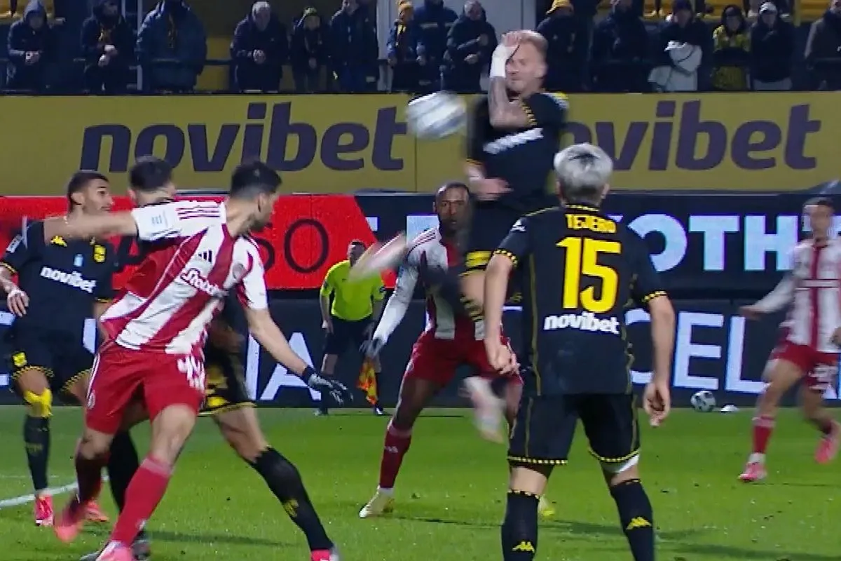 Για το χέρι του Ράτσιτς: “Σε αυτή την περίπτωση ο παίκτης του Άρη παίζει πρώτα την μπάλα με το πόδι, αυτή αλλάζει εντελώς πορεία και βρίσκει τυχαία στο αριστερό του χέρι. Η σωστή απόφαση που περιμένουμε είναι να συνεχιστεί το παιχνίδι. Αν ο διαιτητής καταλόγιζε πέναλτι, θα περιμέναμε παρέμβαση του VAR για να το ακυρώσει”.
