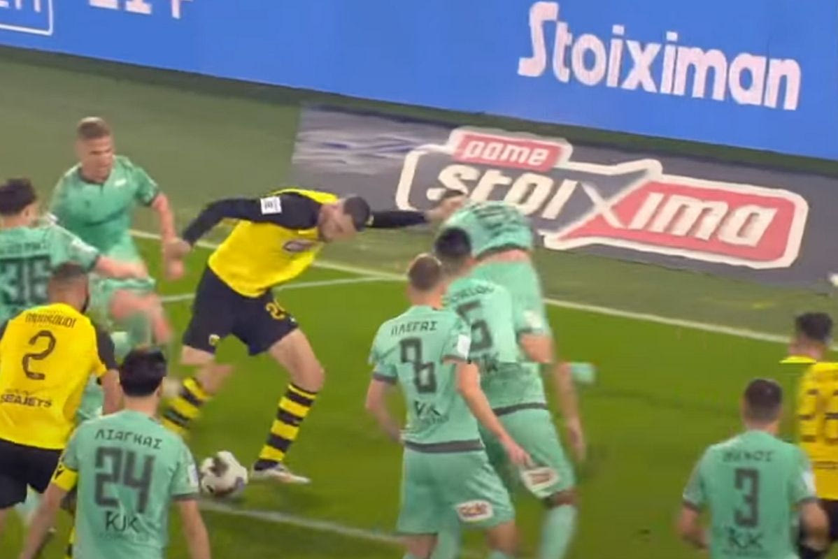 Για το γκολ του Μήτογλου κόντρα στον Λεβαδειακό: “Σε αυτή την περίπτωση ο επιτιθέμενος σπρώχνει και με τα δύο του χέρια τον αμυνόμενο, εμποδίζοντάς τον να παίξει την μπάλα. Περιμένουμε καταλογισμό φάουλ και παρέμβαση του VAR για να ακυρωθεί το τέρμα, πράγμα που δεν έγινε”.