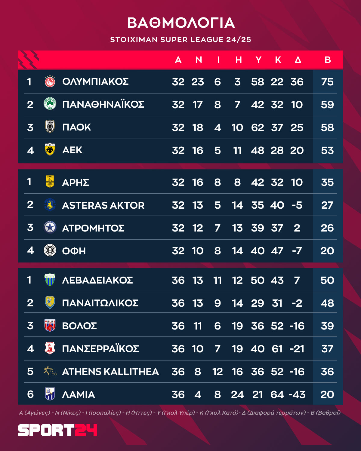 Stoiximan Super League: Η τελική βαθμολογία των playouts μετά την ολοκλήρωση και της 10ης αγωνιστικής