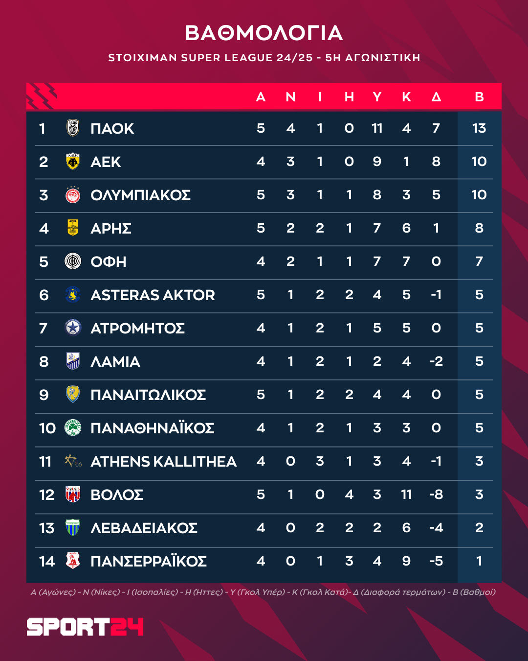 Το πρόγραμμα και τα αποτελέσματα της πέμπτης αγωνιστικής