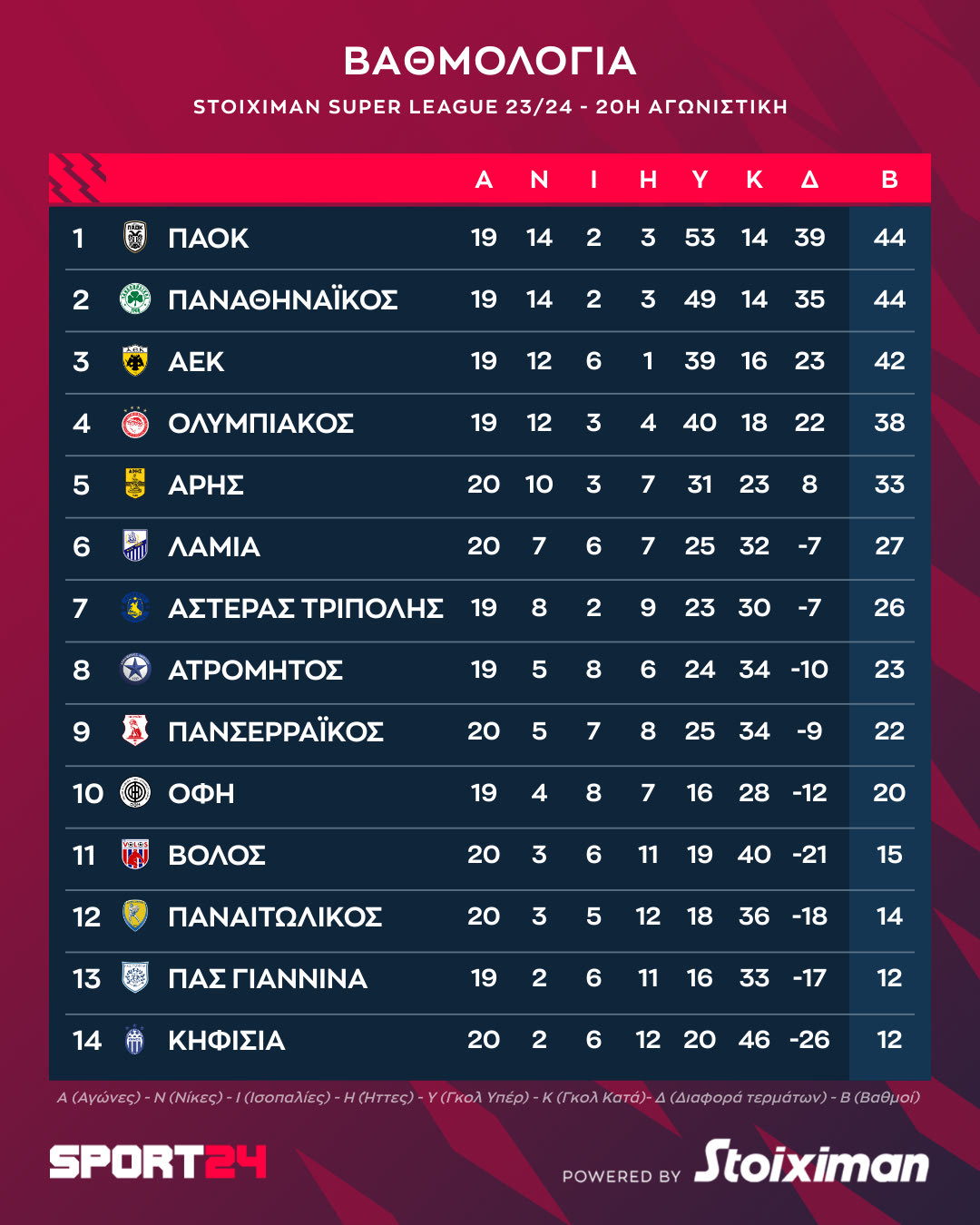 Stoiximan Super League: Η βαθμολογία μετά τη νίκη του Άρη στην Καισαριανή