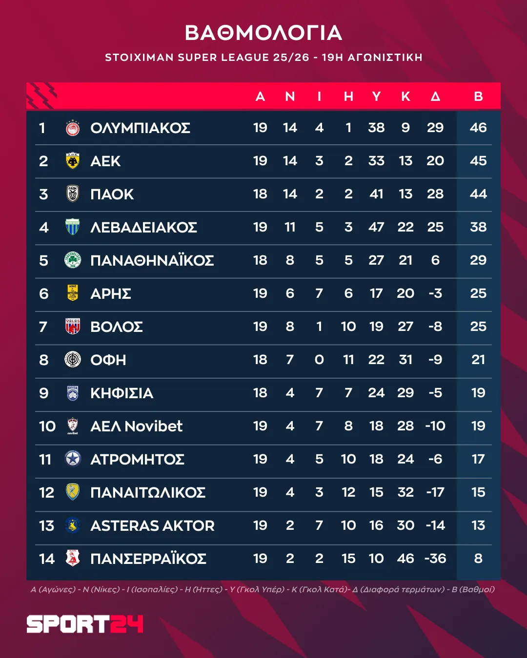 Stoiximan Super League: Η βαθμολογία μετά τη νίκη του Ολυμπιακού κόντρα στον Αστέρα AKTOR