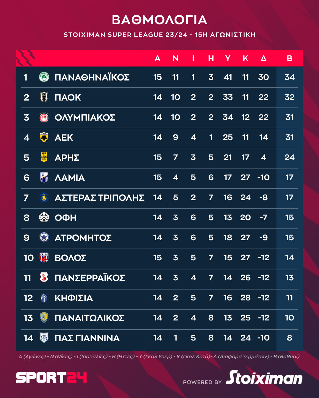 Stoiximan Super League: Η βαθμολογία μετά τη νίκη του Παναθηναϊκού κόντρα στο Βόλο