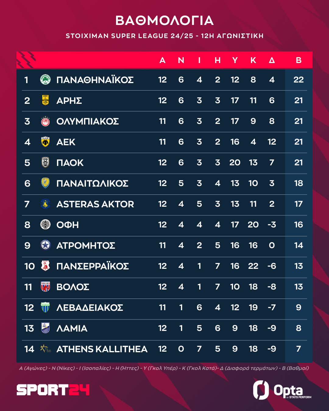 Το πρόγραμμα της 12ης αγωνιστικής