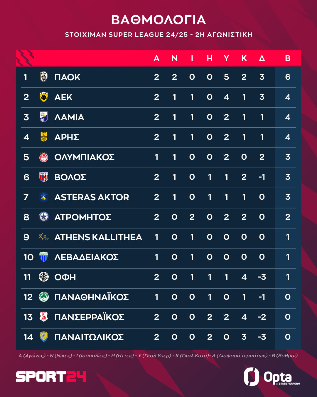 Δείτε πώς διαμορφώθηκε η βαθμολογία της Stoiximan Super League μετά τη νίκη του ΠΑΟΚ επί του Παναιτωλικού για την 2η αγωνιστική.