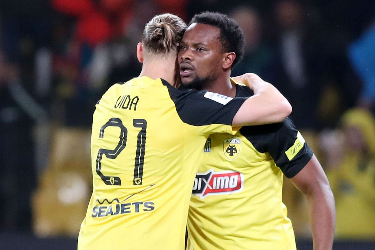 Ο Λιβάι Γκαρσία πανηγυρίζει με τον Βίντα το γκολ του στο ΑΕΚ - Άρης ΒΗΧΟΣ ΝΙΚΟΣ / INTIME SPORTS
