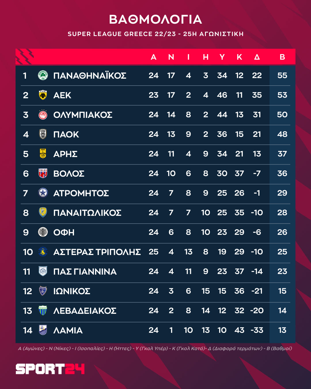 - 19:00 Άρης – ΠΑΣ Γιάννινα
