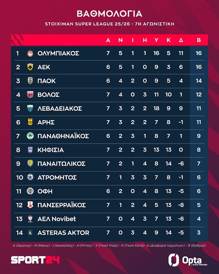 Το πρόγραμμα και τα αποτελέσματα της 7ης αγωνιστικής