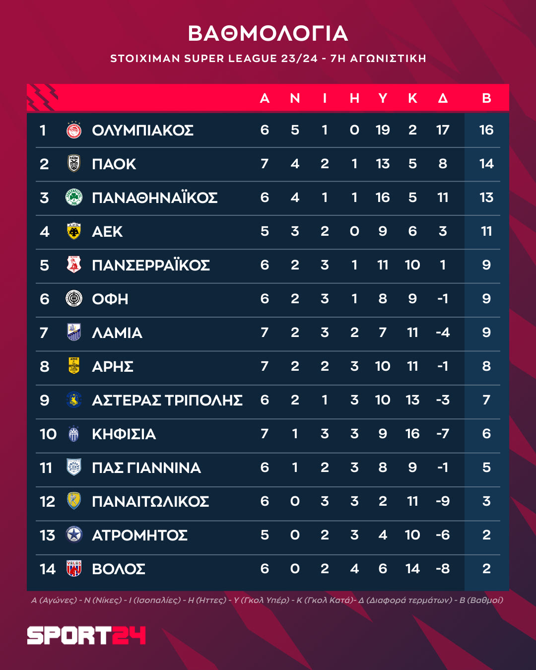 Το πρόγραμμα της αγωνιστικής