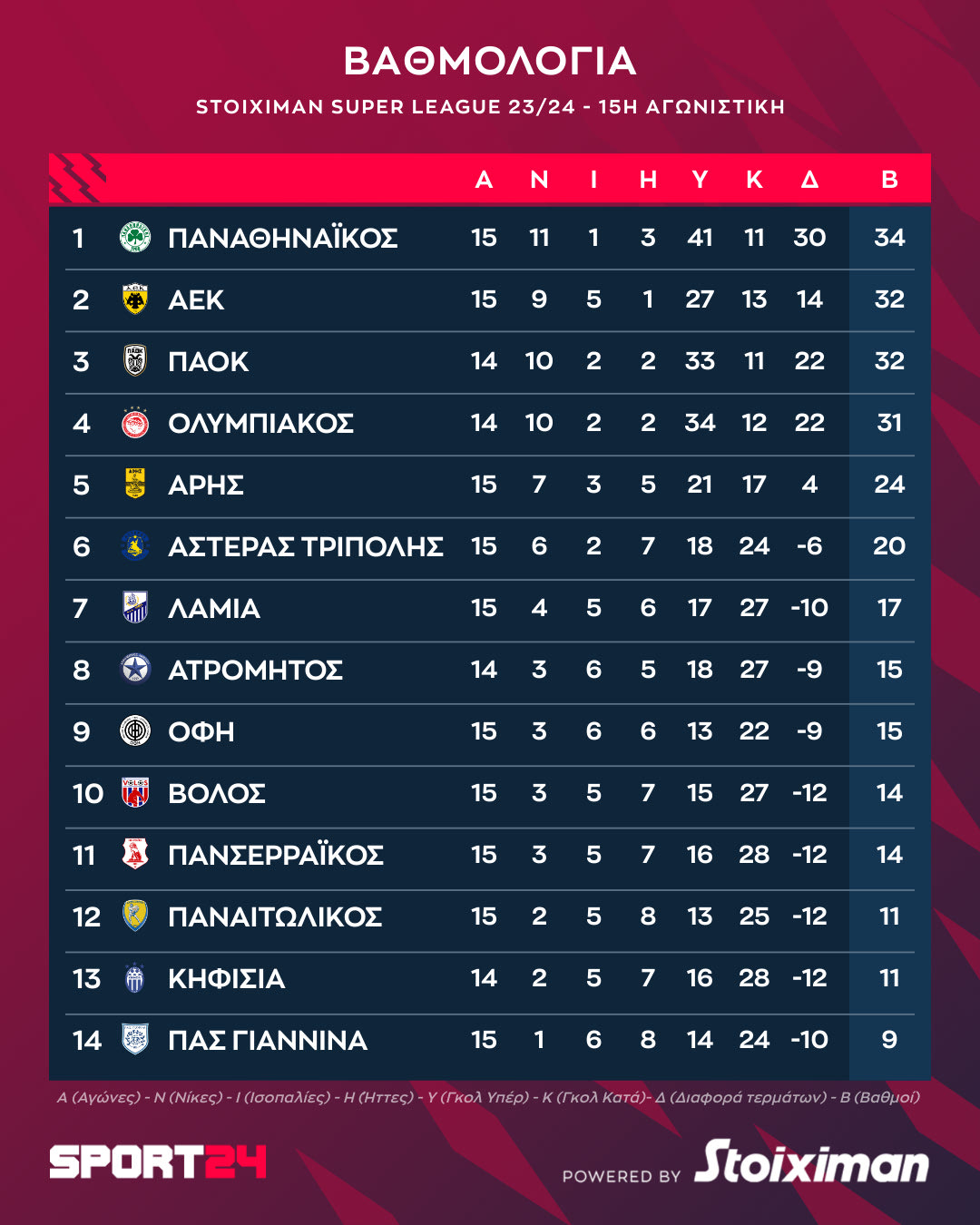 Το πρόγραμμα της 15ης αγωνιστικής