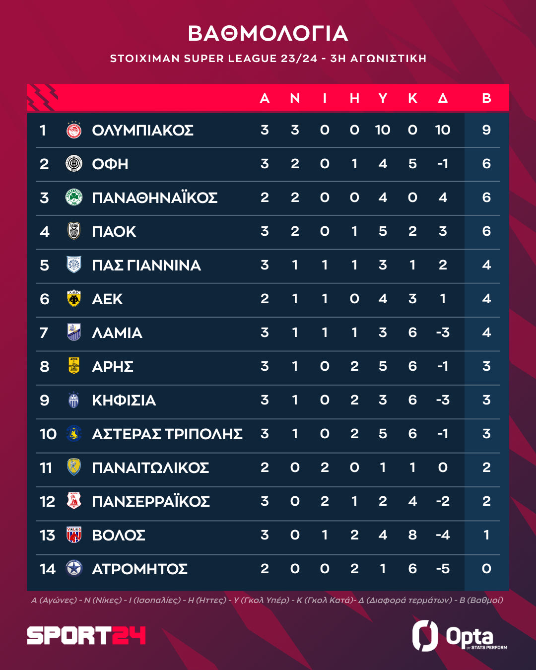 Τα αποτελέσματα της 3ης αγωνιστικής