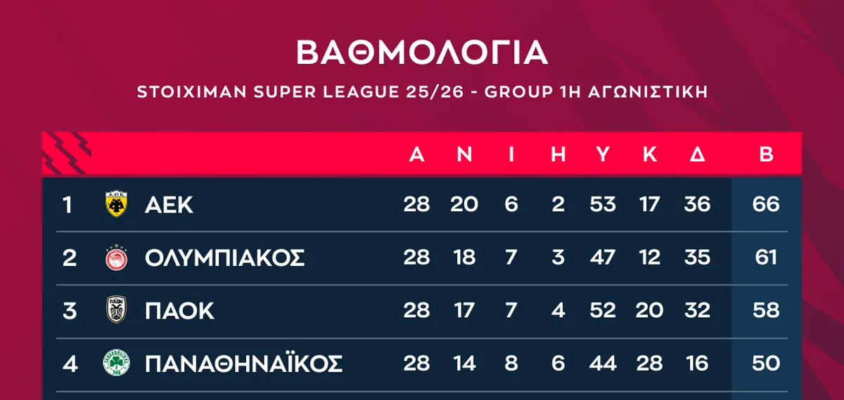Η βαθμολογία των playoffs της Stoiximan Super League
