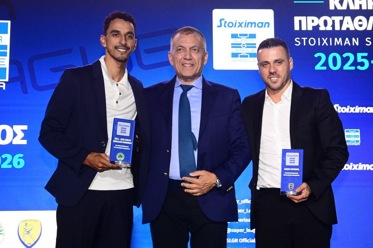Στους Αντελίνο Βιεϊρίνια και Ζέκα πήγαν τα πρώτα βραβεία της βραδιάς στην κλήρωση της Stoiximan Super League. Οι δύο παίκτες τιμήθηκαν για την προσφορά τους στο ελληνικό ποδόσφαιρο.