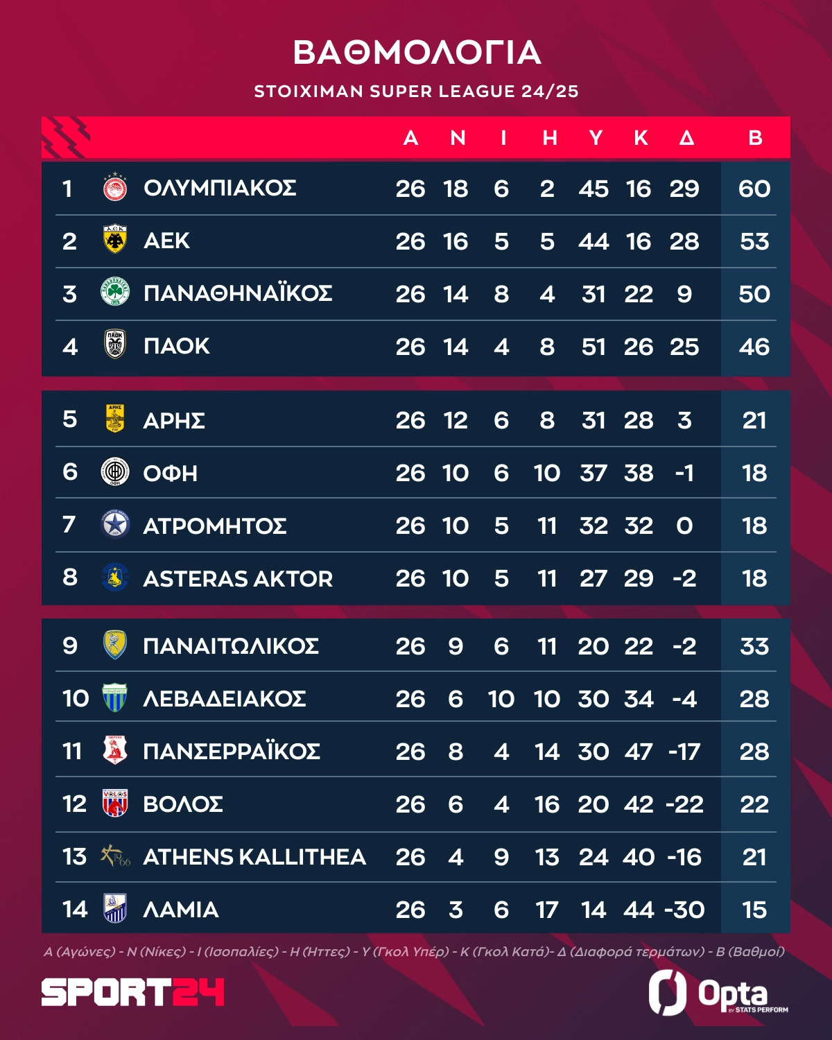 Stoiximan Super League: Με τι βαθμούς μπαίνουν στα playoffs 5-8 μετά τη διαίρεση