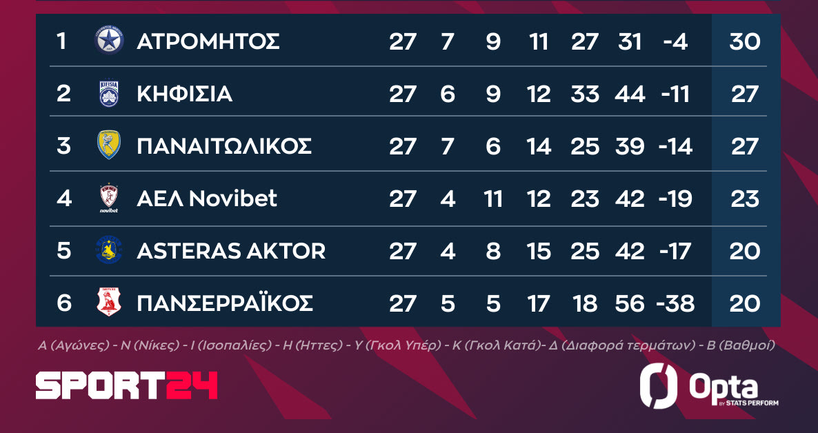 - 19:00 Ατρόμητος – Κηφισιά / NOVASPORTS PRIME
