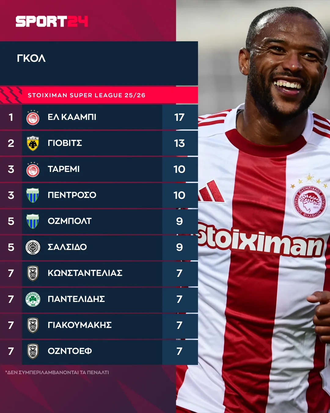 Έτσι, ο 32χρονος έφτασε τα 17 τέρματα στο ελληνικό πρωτάθλημα σε 21 αγώνες και ξέφυγε με τέσσερα γκολ από τον δεύτερο στον πίνακα των σκόρερ, Λούκα Γιόβιτς.