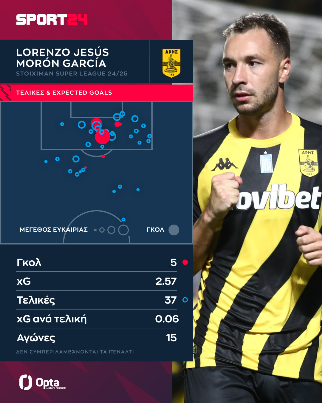 Τα τέσσερα από τα εννέα γκολ του Μορόν προέρχονται από την άσπρη βούλα. Η απειλή του πέραν των πέναλτι υπολογίζεται σε 2.57 xGoals (ενώ έχει πετύχει πέντε γκολ πλην των πέναλτι).