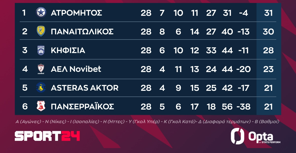 - 19:00 ΑΕΛ Novibet – Ατρόμητος