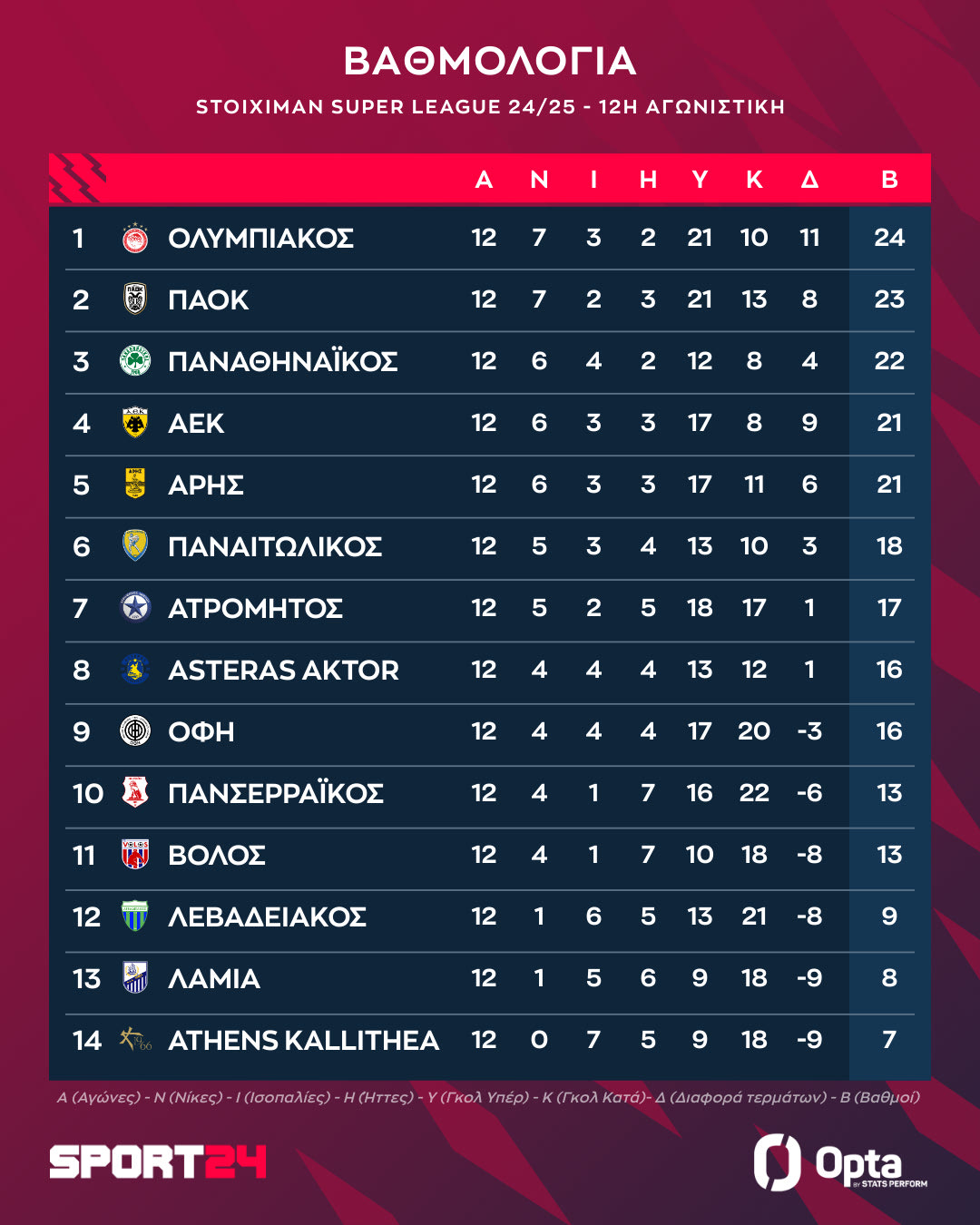 Η Stoiximan Super League συνεχίζεται με την 13η αγωνιστική, το φινάλε του πρώτου γύρου της κανονικής διάρκειας του πρωταθλήματος.