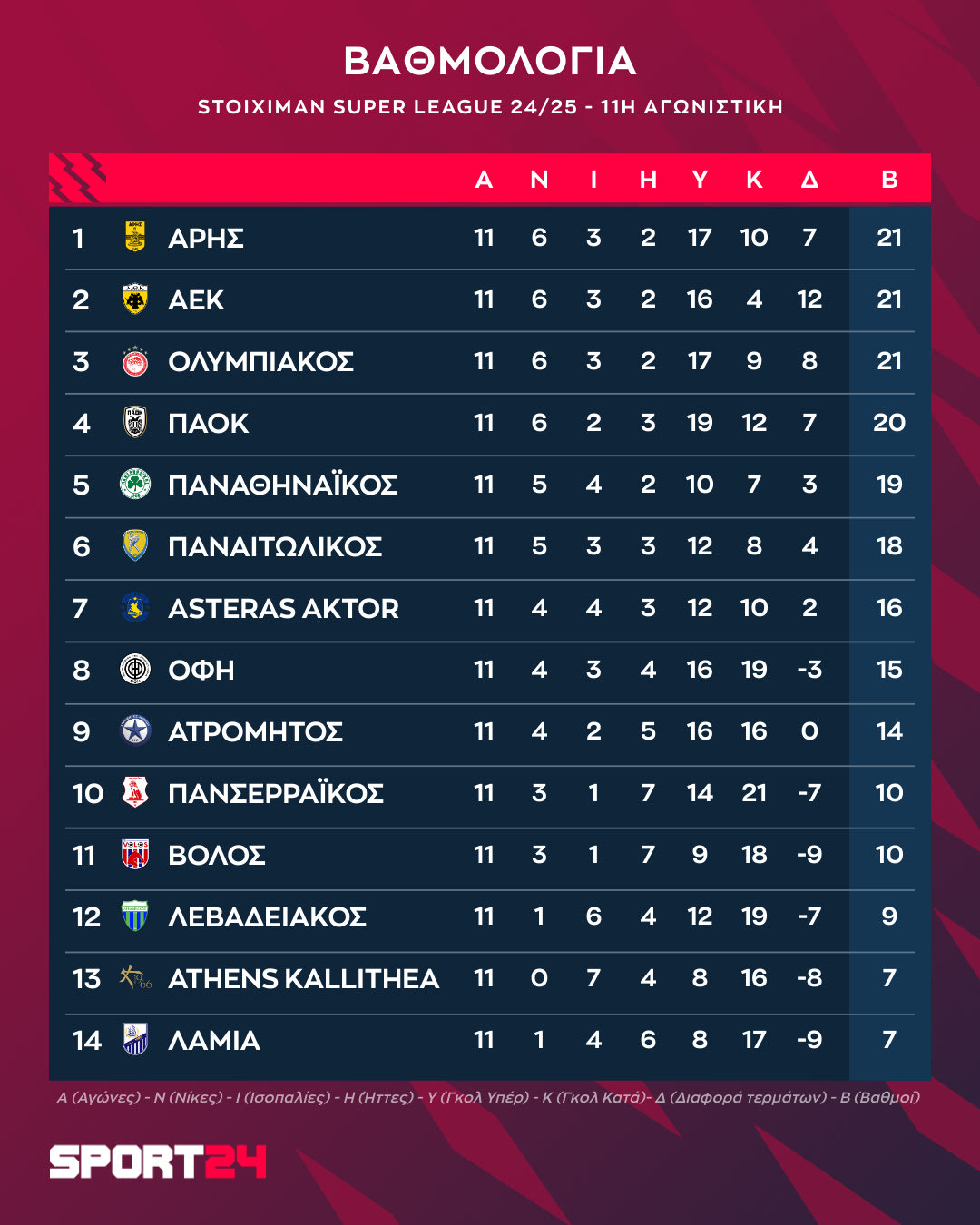 Η 12η αγωνιστική της Stoiximan Super League κάνει σέντρα την Παρασκευή 22 Νοεμβρίου, με την Athens Kallithea να υποδέχεται τον Πανσερραϊκό στις 19:30.