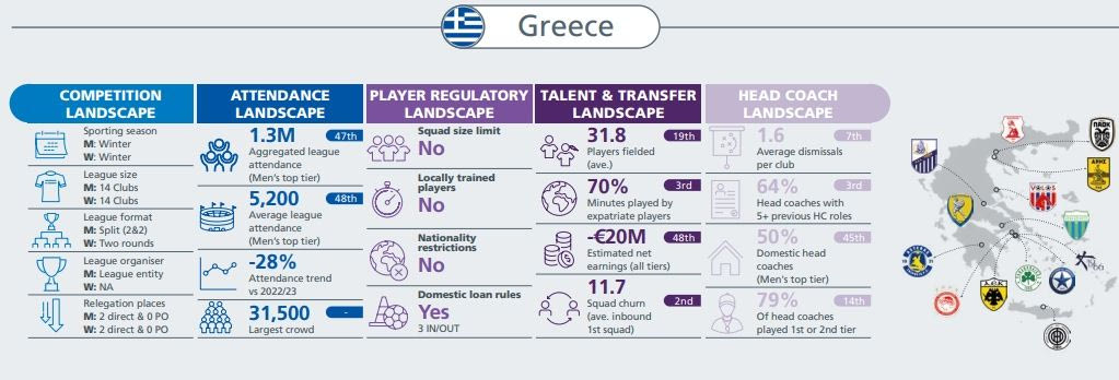 Επομένως, έχουν προκύψει και χρήσιμα στοιχεία όσον αφορά την Ελλάδα και την σεζόν 2023/24, τα οποία βρίσκονται στην έκδοση της UEFA. Πάμε να δούμε ορισμένα από αυτά.