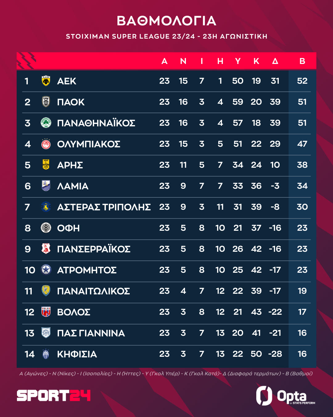 Μάλιστα, η Λαμία θα μπορούσε να κλειδώσει την εξάδα από την επόμενη αγωνιστική, με νίκη της επί της ΑΕΚ και ήττα ή ισοπαλία του Αστέρα από τον Ολυμπιακό.