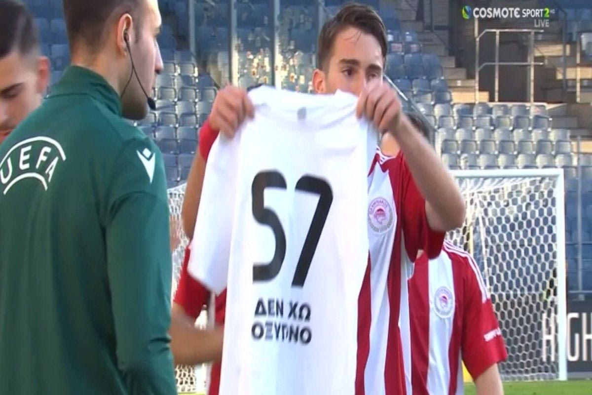 Κατά τον πανηγυρίσμο του ο 19χρονος μεσοεπιθετικός ύψωσε φανέλα με το “57” για τη μνήμη των θυμάτων των Τεμπών που έγραφε πάνω “δεν έχω οξυγόνο” που ήταν και το σύνθημα των συγκεντρώσεων για τη συμπλήρωση δύο χρόνων για το δυστύχημα.