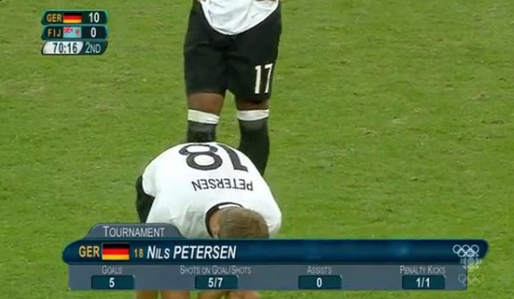 Στους προημιτελικούς του Ολυμπιακού τουρνουά ποδοσφαίρου ανδρών πέρασαν η Νότια Κορέα και η Γερμανία από τον Γ' Όμιλο. Οι Γερμανοί διέλυσαν 10-0 (!) τα Φίτζι με πέντε γκολ του Πέτερσεν και οι Ασιάτες 1-0 το Μεξικό (VIDEOS).
