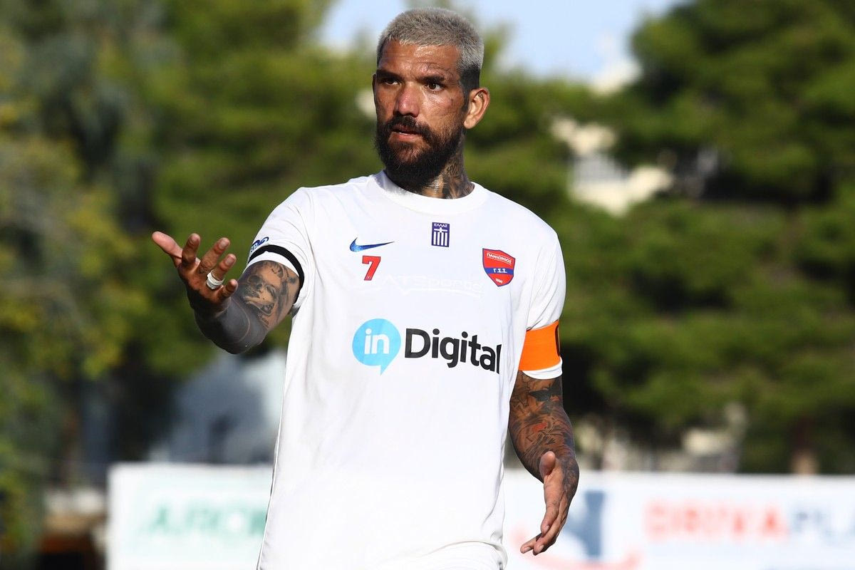 Ο Δημήτρης Κολοβός με τη φανέλα και το περιβραχιόνιο του Πανιωνίου