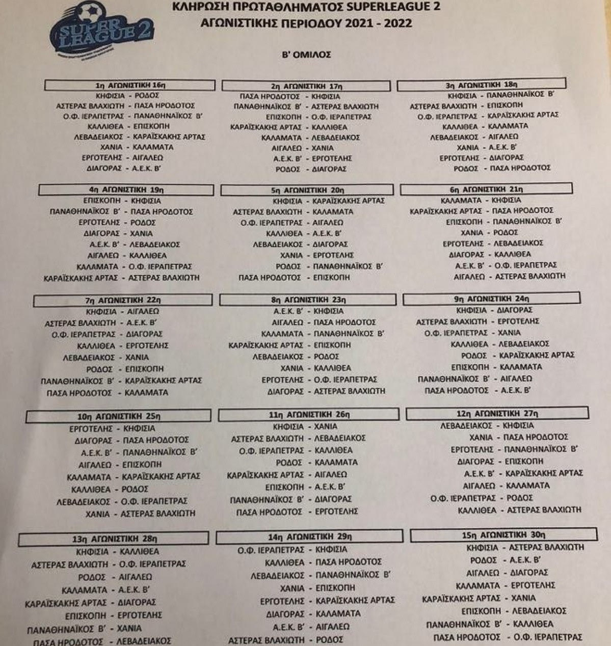 Δείτε το αναλυτικό πρόγραμμα του Νοτίου Ομίλου της Super League 2