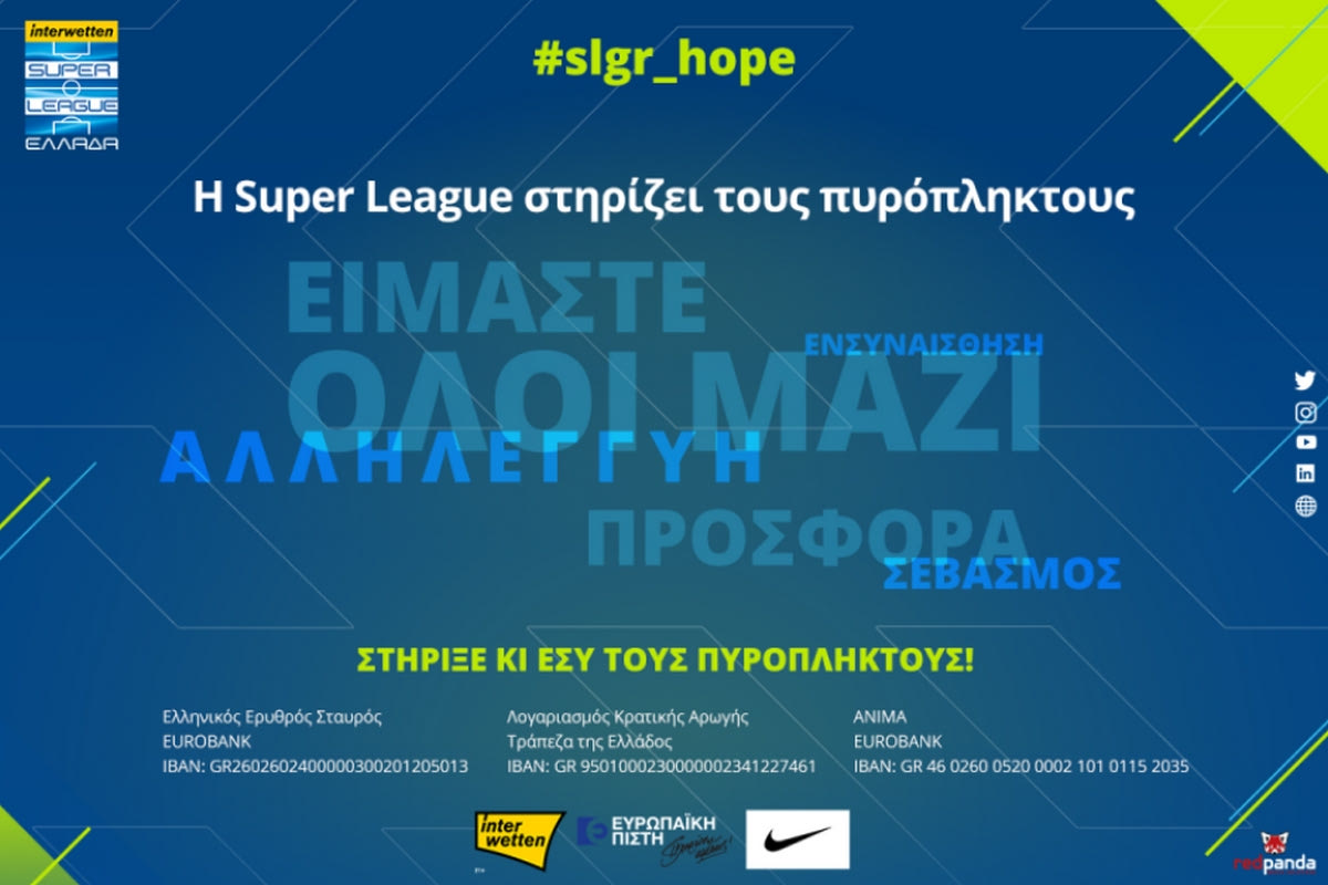 Με το hashtag #slgr_hope η Super League θα συντονίσει την εκστρατεία ενημέρωσης και ευαισθητοποίησης υπέρ των πυρόπληκτων.